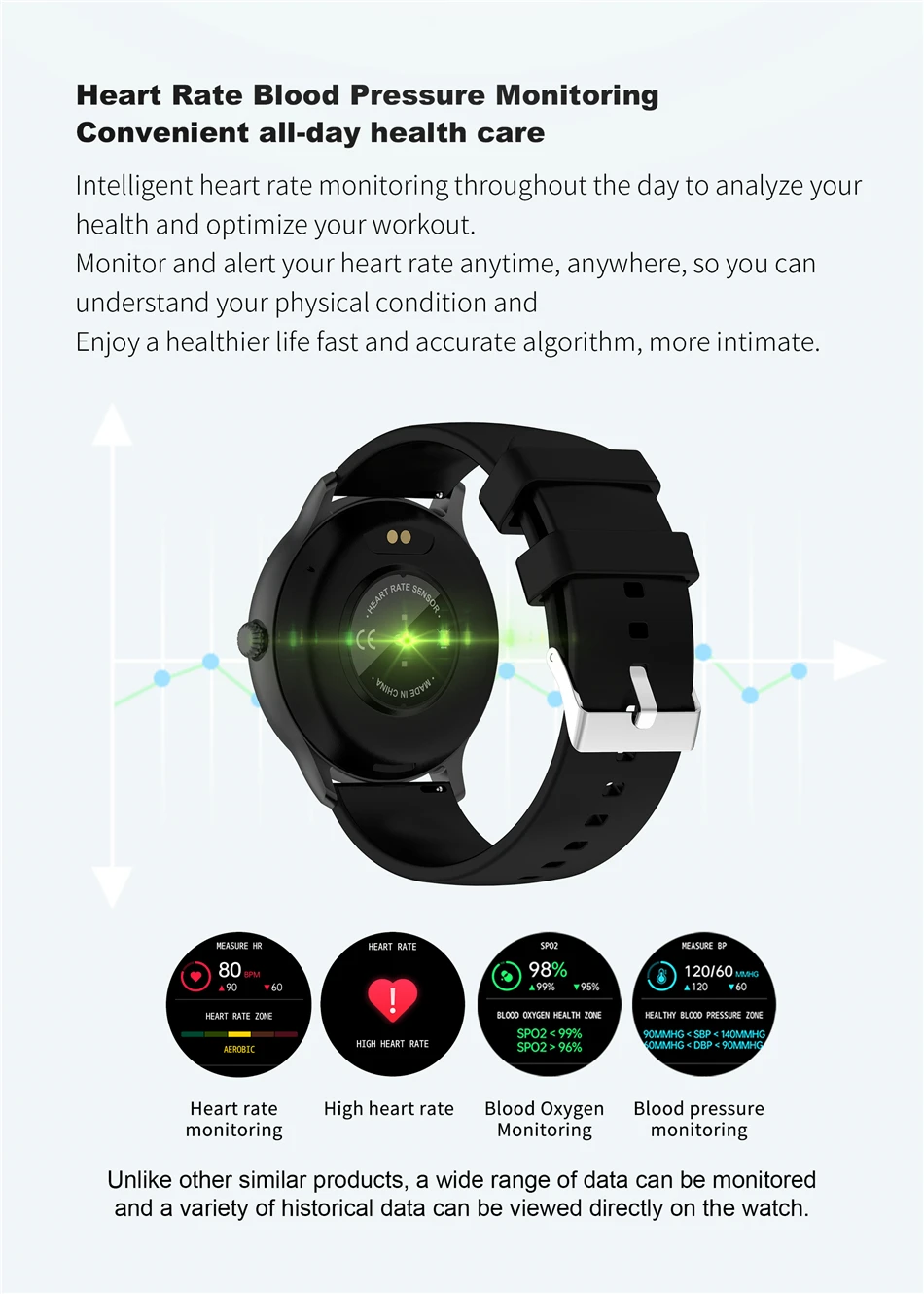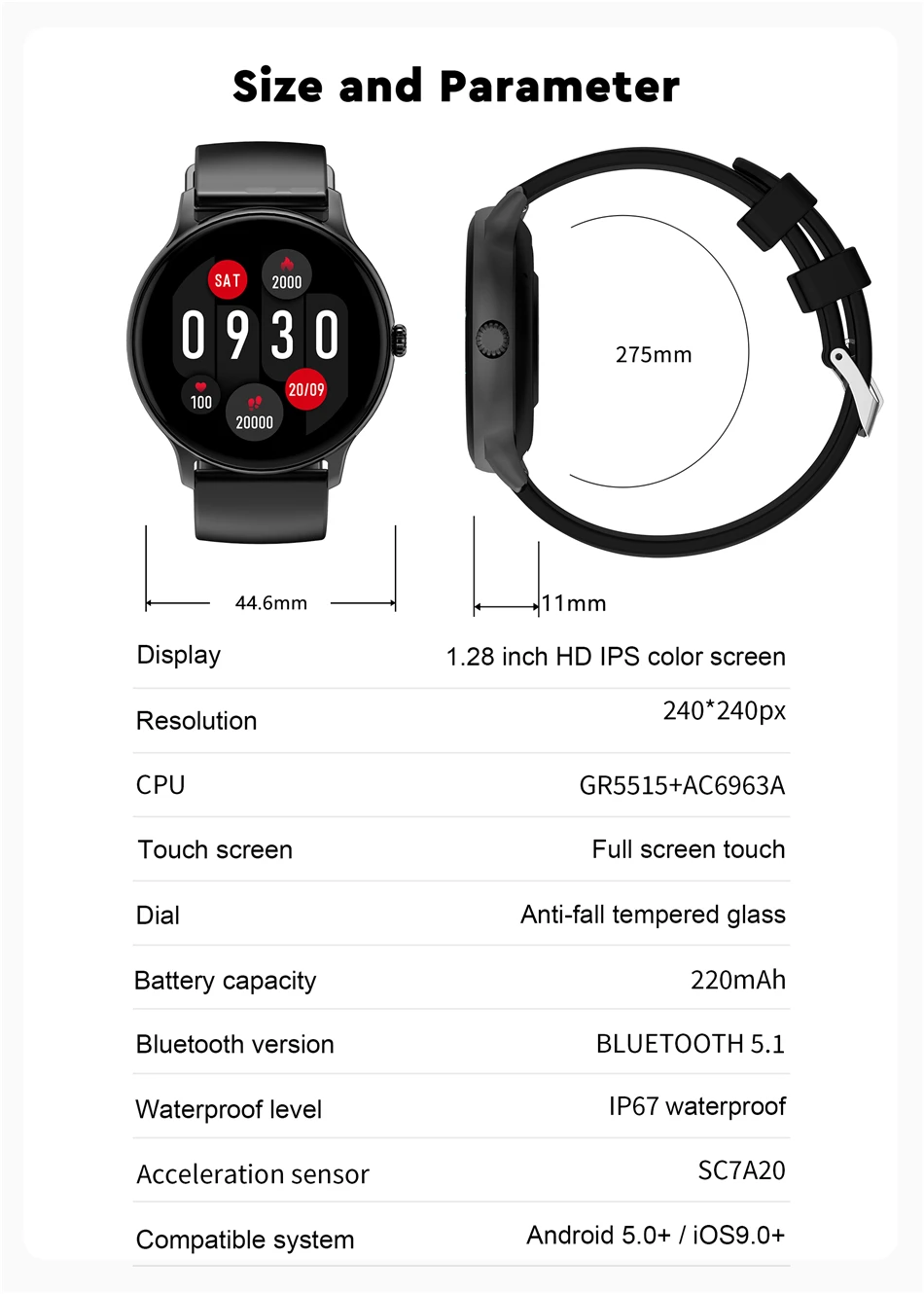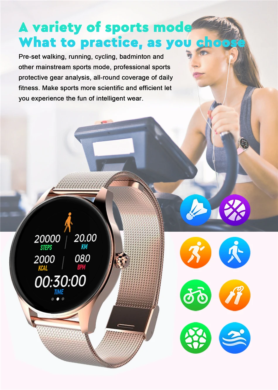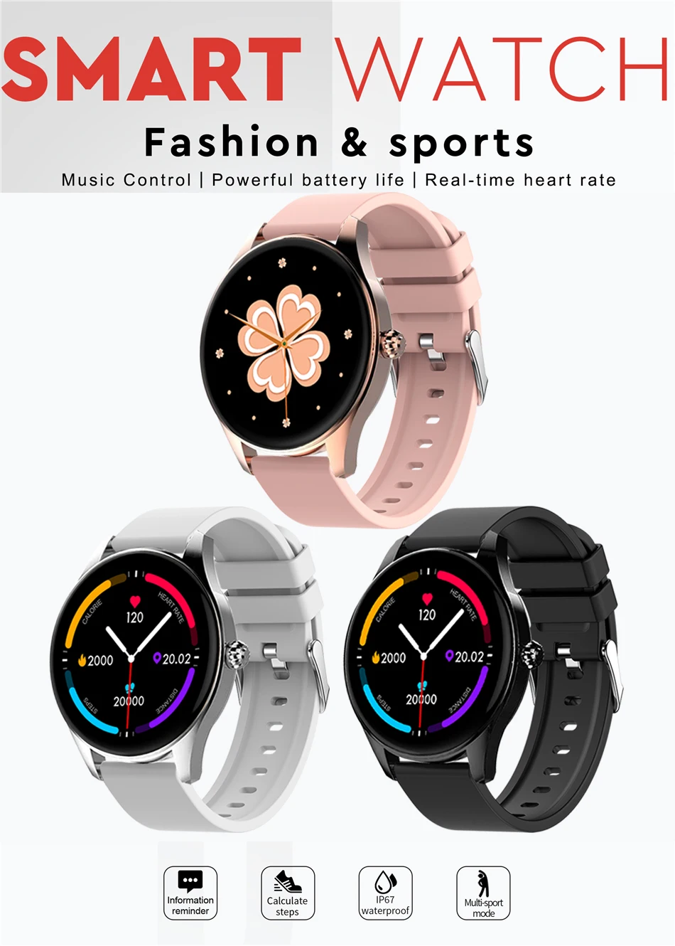Rastreamento GPS, chamada de discagem personalizada, Notificação (SMS, WeChat, QQ push), telefone Bluetooth, modelo multi Sprot-Watch (APP esportes, pulseira esportes, dados de pulseira de sincronização APP, andando, corrida, ciclismo, pular corda, basquete, futebol, badminton, natação, de acordo com o modo de movimento, exibir etapas, Tempo de exercício, faixa de movimento GPS, calorias, rastreamento da frequência cardíaca do exercício, quilometragem e outros dados) padrão 4 mostradores, personalizado 1 discagem, pode ser baixado através do mercado de discagem, respirar treinamento, pressão Arterial, Frequência Cardíaca, Oxigênio Sanguíneo, Monitor de Sono, Pedômetro, Lembrete Sedentário, Lembrete de Bebida, Câmera Remota, Tempo de Terceiros, Controle de Música, Encontrar Dispositivo de Relógio, Encontrar Celular, Ajuste de Luminosidade LCD, Lembrete Despertador, Rejeição de Chamada/SMS, Visualização Rápida, Modo Não Perturbar, alcançar notificação meta, Stop watch, Tocha,